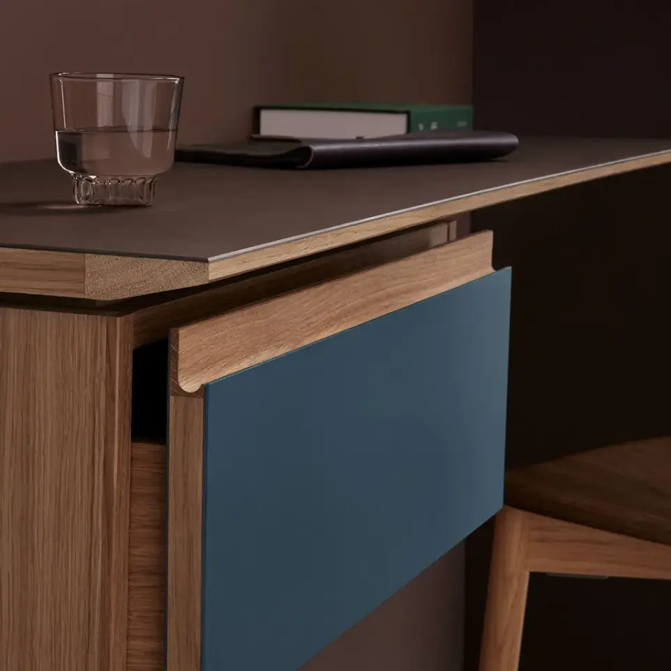 Furniture Linoleum kan eenvoudig worden aangebracht op alle gangbare materialen zoals MDF, spaanplaat en multiplex, staal of composietmaterialen. Het wordt geleverd in rolformaat en kan zowel horizontaal als verticaal worden toegepast, zelfs op gebogen oppervlakken.