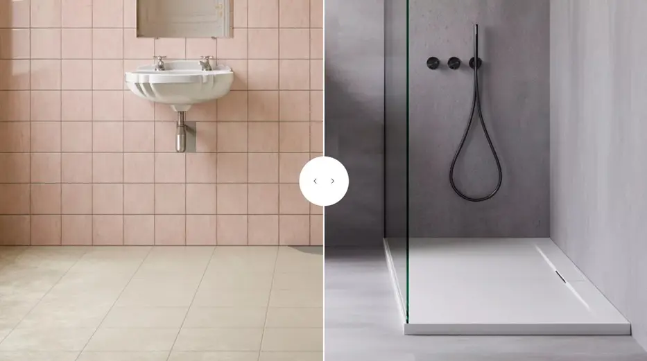 Ook in badkamers kan je eenvoudig vinyl-tegels over de bestaande vloer -en muurtegels plaatsen.
